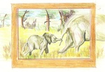 2011Olifant met baby wandelen het schilderij uit