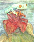 2012Een rood ogige boomkikker onderzoekt de omgeving