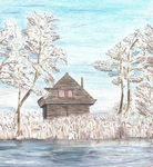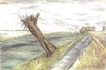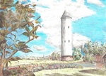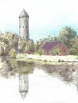 2012De watertoren van Nieuwkoop in het weidse landschap aan de Mije. Piet Potlood is vrij vertaald naar Pedro Grafito